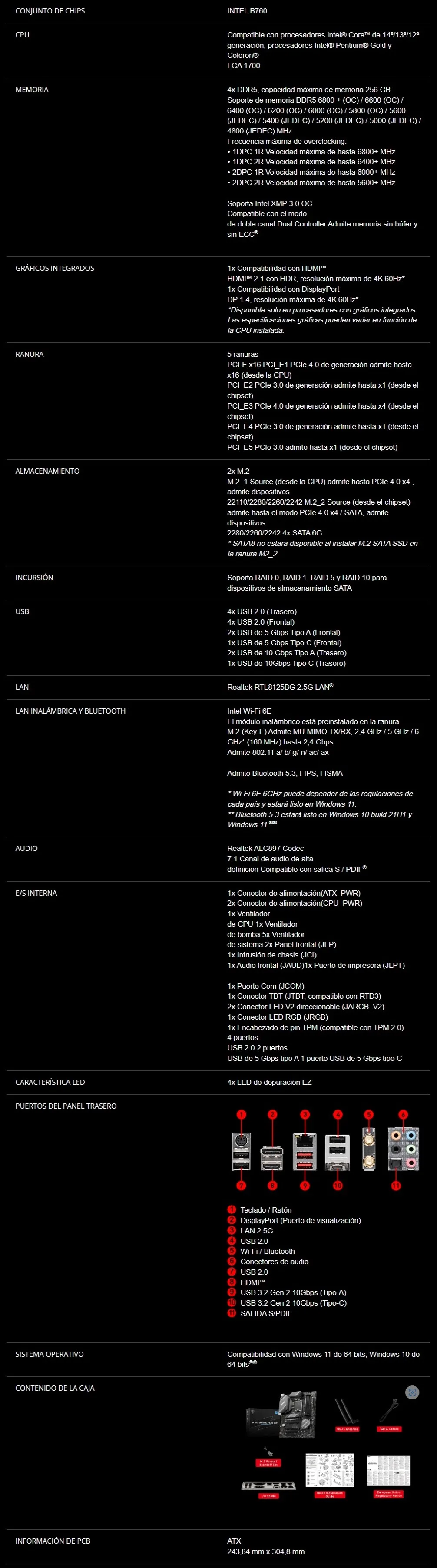 SKU: B760 GAMING PLUS WIFI Categoría: