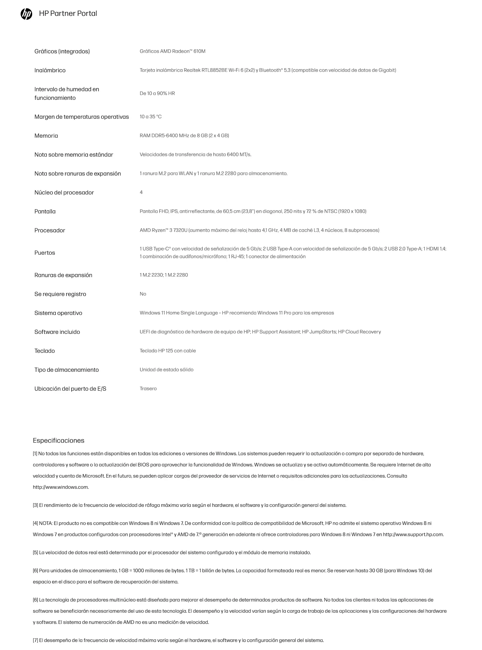 • El HP ProOne 245 G10 All-in-One es un PC todo en uno diseñado para el segmento de negocios. Viene con un procesador AMD Ryzen 3 7320U y 8 GB de memoria RAM para un rendimiento eficiente. La pantalla de 23.8″ ofrece una resolución de 1920 x 1080 pixeles y cuenta con altavoces incorporados para una experiencia de audio inmersiva. Con una cámara con configuración de privacidad y un chip de sonido Realtek ALC3274, garantiza la seguridad y calidad del sonido. Este PC incluye Windows 11 Home como sistema operativo instalado y tiene una capacidad total de almacenamiento de 256 GB en un SSD. Con certificaciones de sostenibilidad como ENERGY STAR y EPEAT, este HP ProOne 245 G10 All-in-One es una excelente opción para entornos de negocios.