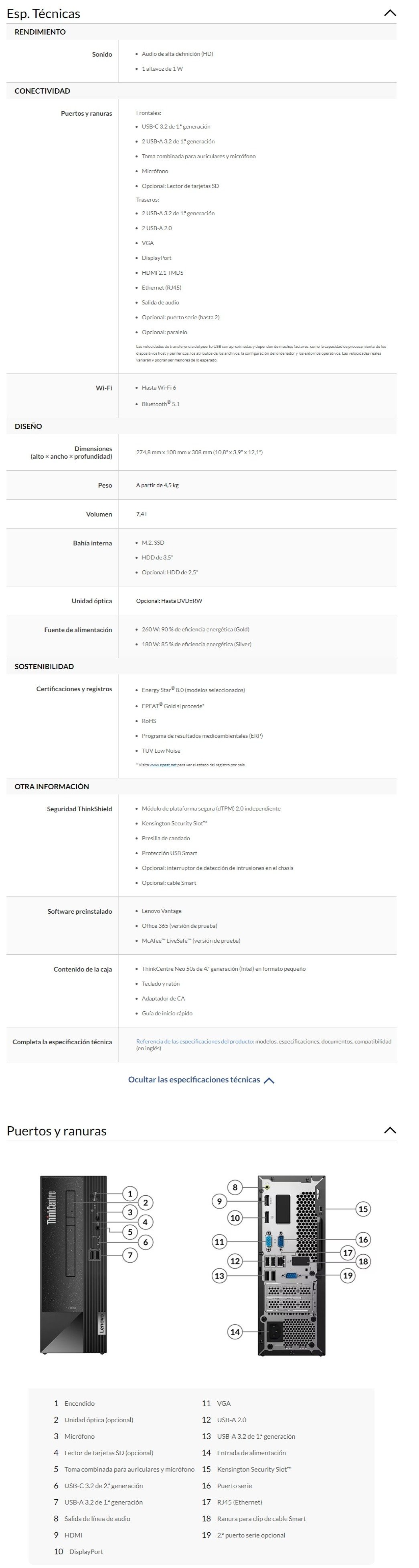 ![11 PC LENOVO THINKCENTRE NEO 50S GEN 4 / Intel Core i3-13100 / 8GB RAM DDR4 3200 MHz [Máx. 64 GB] / 512GB SSD M.2 / Fontal X1 USB-C, X2 USB-A 3.2, X2 3.5 MM / Trasero X2 USB-A 2.0, X2 USB-A 3.2, X1 HDMI 2.1, X1 DisplayPort, X1 VGA, X1 RJ45, X1 3.5 MM / Wi-Fi 6e / Windows 11 Pro / Teclado + Mouse / Color Negro - Image 1](https://eafa3974.delivery.rocketcdn.me/wp-content/uploads/2024/10/11-7.webp)