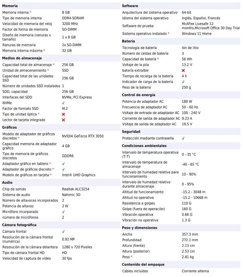 ![1 Laptop Gamer DELL G15 G5511 / 15.6″ IPS / 120 Hz / Intel® Core™ i5-11260H 4.40 GHz / Gráfica NVIDIA RTX 3050 4GB GDDR6 / Memoria RAM 8 GB DDR4 3200 MHz [Máx. 32 GB] / 256GB SSD NVMe / Audio Nahimic / X3 USB-A, X1 USB-C, X1 RJ45, X1 HDMI, X1 3.5MM / Windows 11 Home / Teclado Retroiluminado / Español / Color Negro - Image 1](https://eafa3974.delivery.rocketcdn.me/wp-content/uploads/2024/10/1-297.webp)