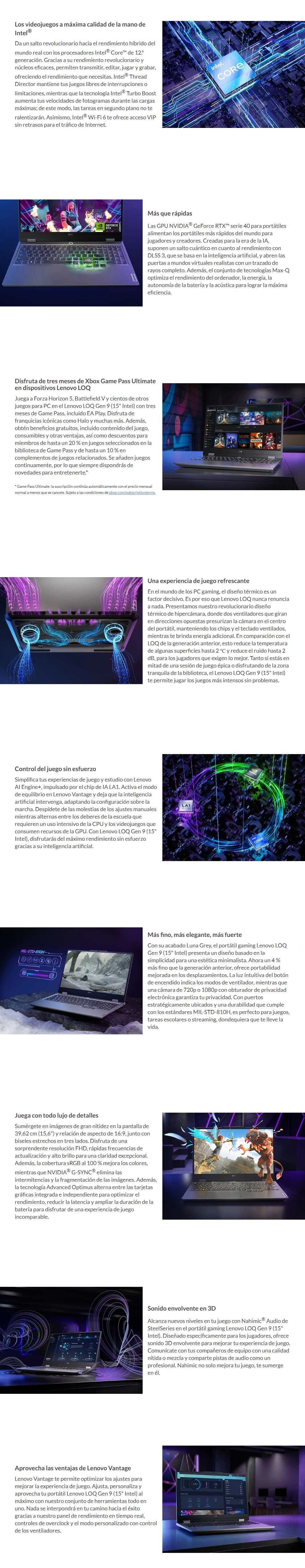Laptop Gamer LENOVO LOQ 15IAX9 – Intel Core I5-12450HX, 15.6”, RAM 16GB, SSD M.2 2242 1TB, Windows 11 Home, RTX 4050, Español – Luna Grey