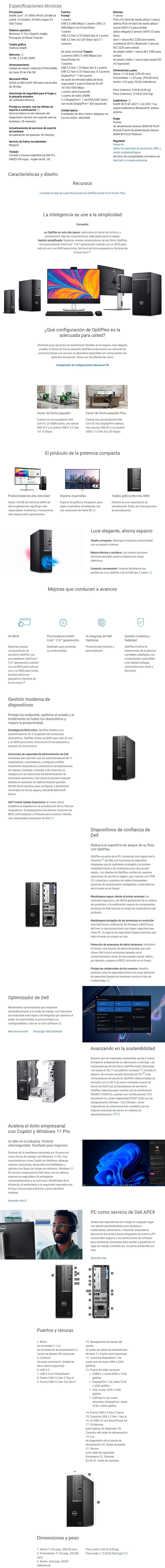 Mini PC DELL OptiPlex 7020 SFF / Intel Core i5-14500 / Gráficos Intel / Memoria RAM 16GB DDR5 / Almacenamiento 256GB SSD M.2 NVME / USB 2.0, USB-C, HDMI, RJ45 / Windows 11 Pro / Negro