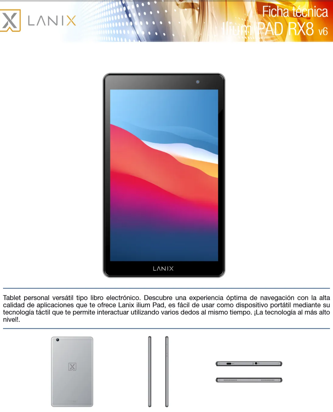 Tablet personal versátil tipo libro electrónico. Descubre una experiencia óptima de navegación con la alta calidad de aplicaciones que te ofrece Lanix ilium Pad, es fácil de usar como dispositivo portátil mediante su