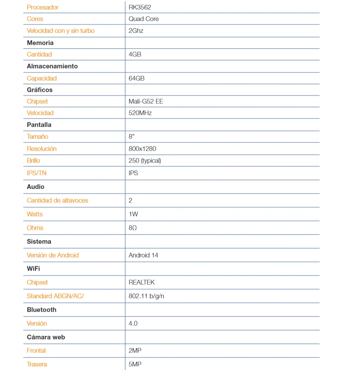 Tablet LANIX ILIUM PAD RX8 V6 – Quad-Core RK3562 RAM 4GB Almacenamiento 64GB, Cámara 2MP/5MP, Android 14 – Gris