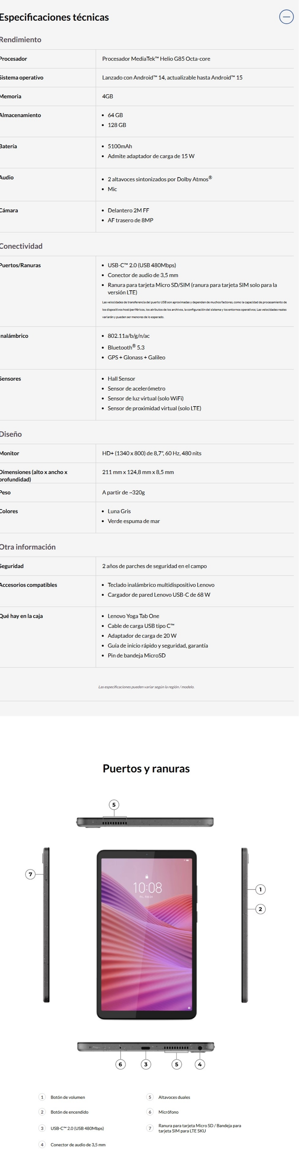 Tablet LENOVO IDEA TAB ONE – MediaTek Helio G85, 8.7”, RAM 4GB, Almacenamiento 128GB, Cámara 2MP/8MP, Android 14, Gris – Funda