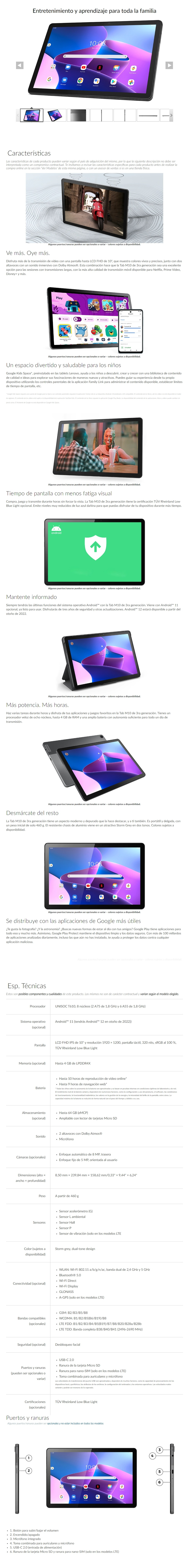 Tablet LENOVO M10 3ra Gen TB328FU / 10.1” / Unisoc T610 1.8Ghz / Memoria Ram 4GB / Almacenamiento 64GB / Android 11 / Cámara Trasera 8MP / Gris