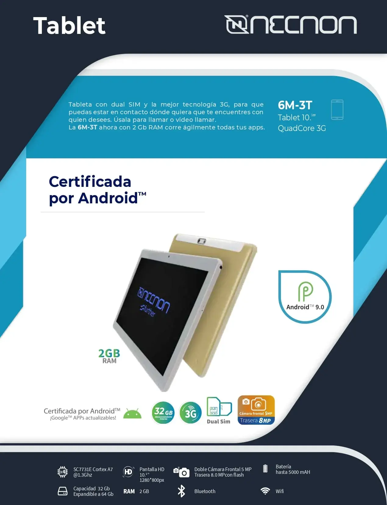 Tableta con dual SIM y la mejor tecnología 3G, para que puedas estar en contacto dónde quiera que te encuentres con quien desees. Úsala para llamar o video llamar…