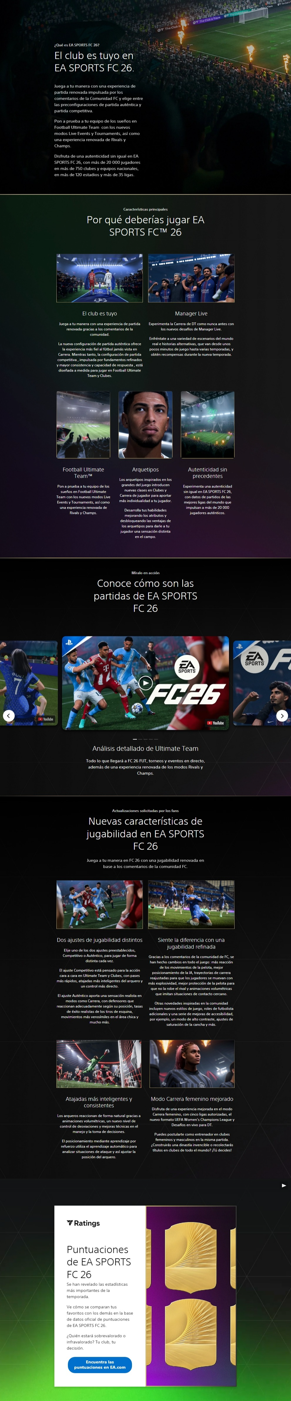 Modos de juego: Carrera, Ultimate Team, Clubes, desafíos en vivo, eventos temáticos