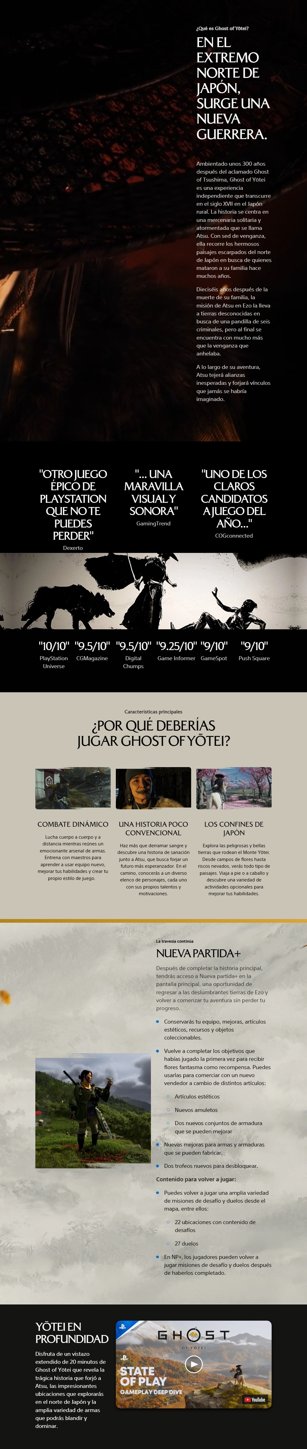Historia: Ambientado 300 años después de Ghost of Tsushima, sigue a Atsu en su misión de venganza en el Japón rural del 1600.