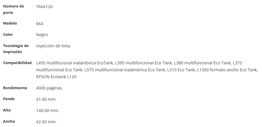 Sé el primero en valorar “Botella De Tinta EPSON 664 T664120 / Negro / Rendimiento 4000 Paginas / 70 ML / Original”
