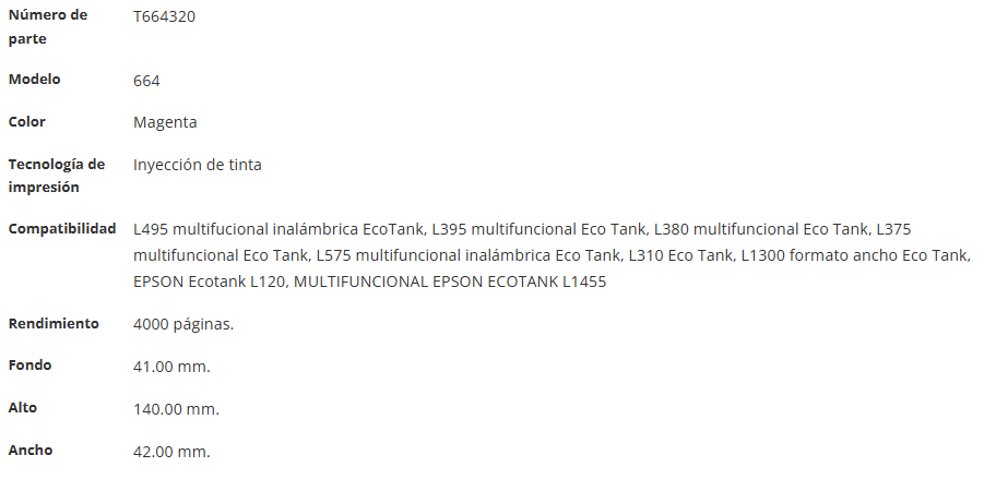 Botella De Tinta EPSON 664 T664320 / Magenta / Rendimiento 4000 Paginas / 70 ML / Original