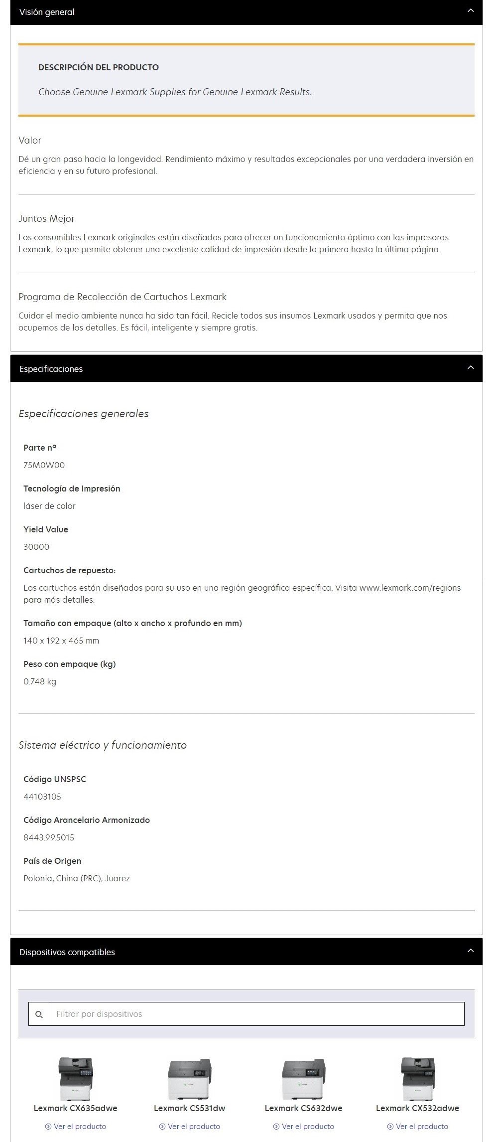 Cartucho LEXMARK 75M0W00 / Contenedor De Desechos / Rendimiento 30 000 Páginas / Láser De Color / Negro