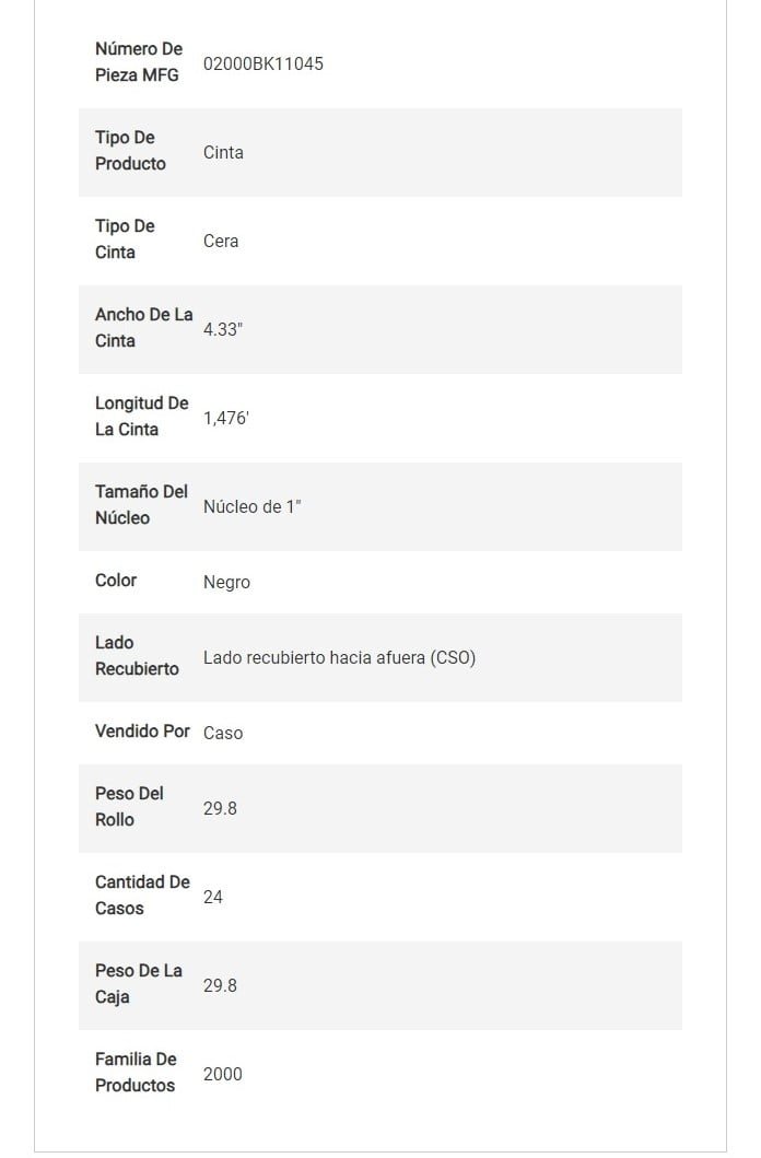 • Esta cinta de cera Zebra puede imprimir a velocidades de hasta 12 pulgadas por segundo.