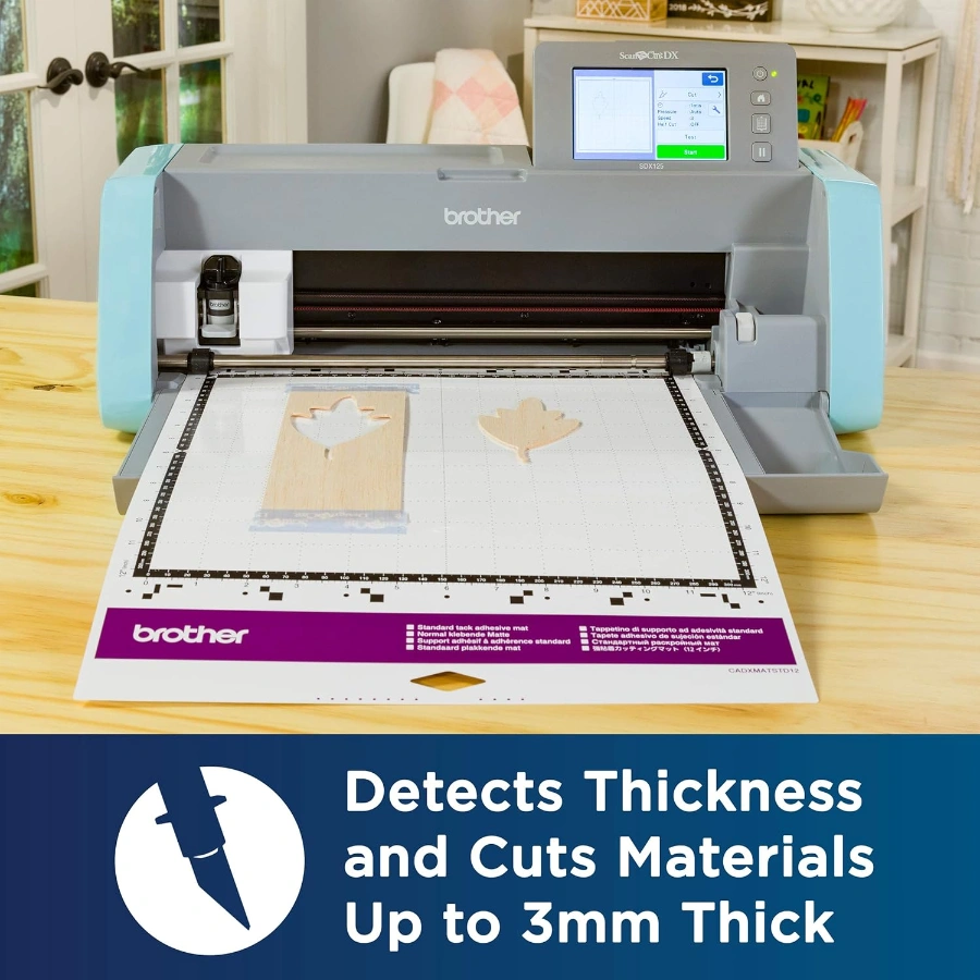• No requiere selección de materiales. La hoja automática ScanNCut DX utiliza una verdadera tecnología de sensor de material automático para detectar el grosor del material sin necesidad de ajuste de hoja o selección de material
