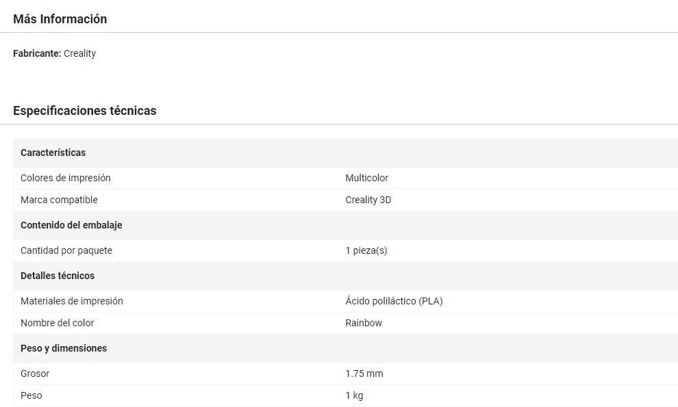 La Creality Bobina de Filamento CR-PLA 1.75mm 1Kg, modelo 3301010010, es un material de impresión que se caracteriza por estar compuesto principalmente por ácido poliláctico (PLA), lo cual le confiere una alta calidad y resistencia en la producción de piezas impresas en tres dimensiones.
