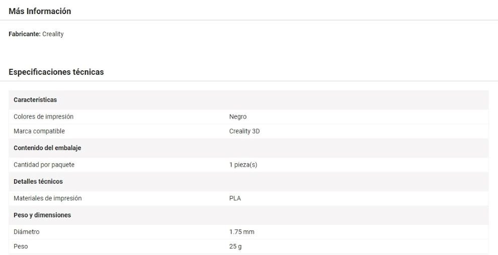 Sé el primero en valorar “Filamento CREALITY EN-PLA / 1.75 MM / Para Impresoras 3D / 0.25KG / Color Negro”