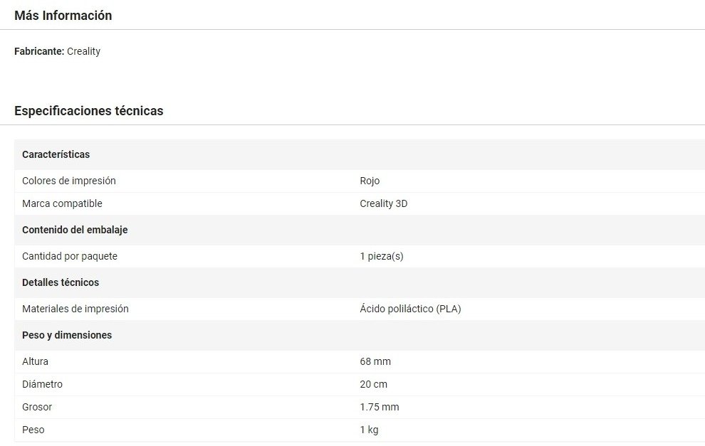Sé el primero en valorar “Filamento CREALITY HP Ultra PLA / 1.75 MM / Para Impresoras 3D / 1KG / Color Rojo”