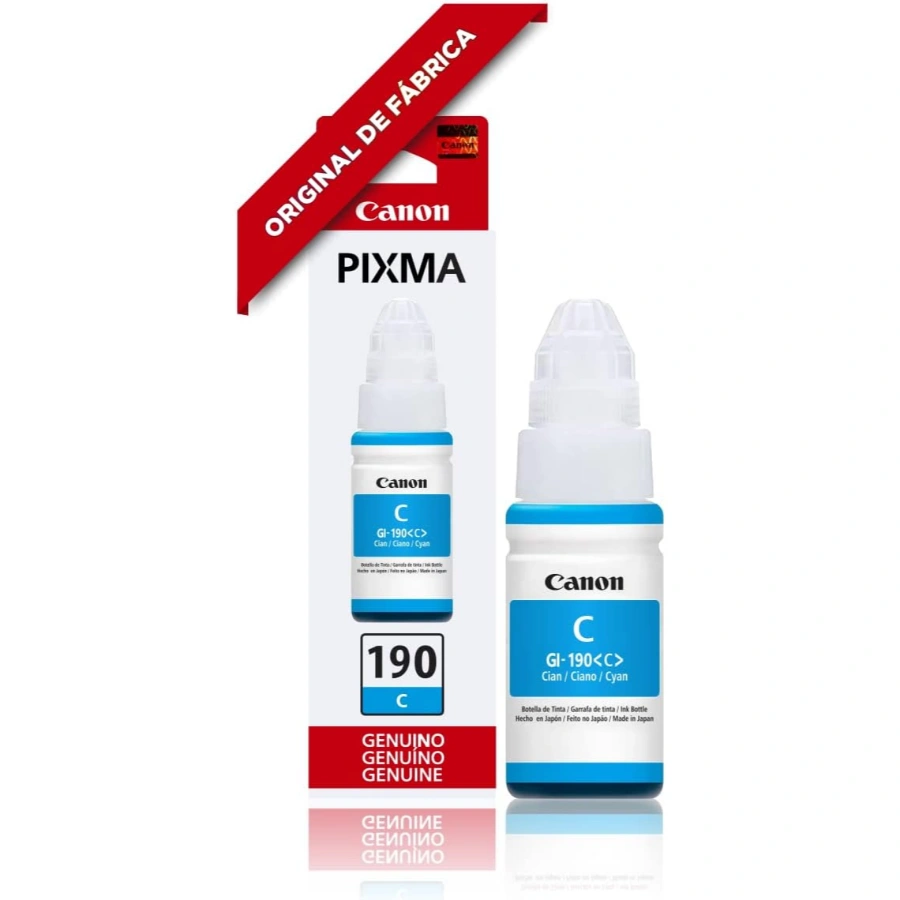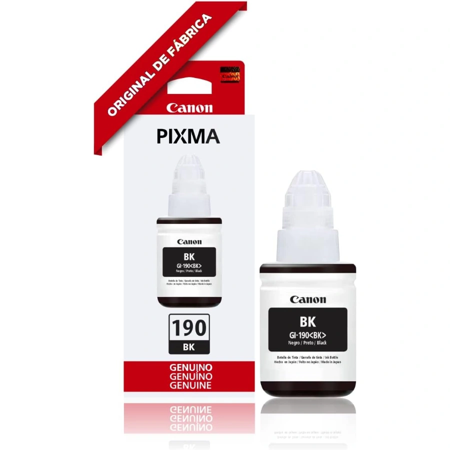 BOTELLA DE TINTA CANON GI-190 La Botella de Tinta Canon GI-190 es el complemento de alto rendimiento para seguir utilizando tu equipo PIXMA con eficiencia y practicidad
