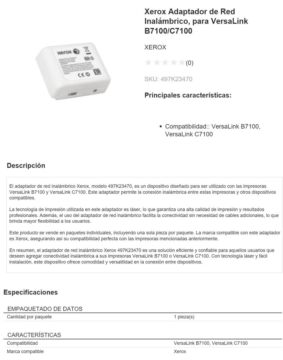 Sé el primero en valorar “KIT De Conexión Inalámbrica XEROX 497K23470 / Para Impresoras / Compatible Con VersaLink B7125 / 7130 / 7135 / Color Blanco”