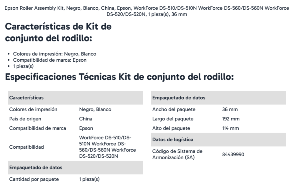 Sé el primero en valorar “KIT De Rodillos EPSON B12B813561 / Para Bandeja De Papel / Compatible Con WorkForce DS / Color Negro”
