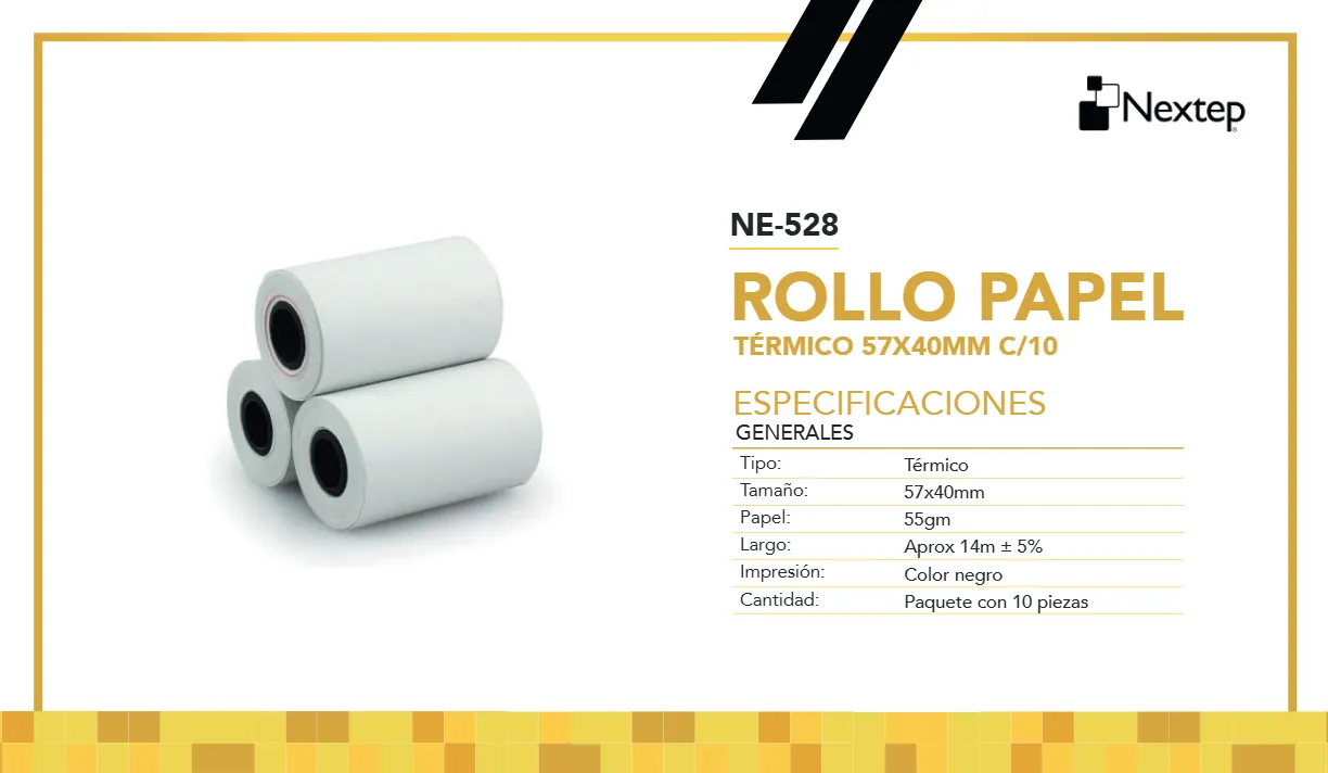 Rollo Térmico NEXTEP / 57x40mm / Paquete Con 10 / Blanco