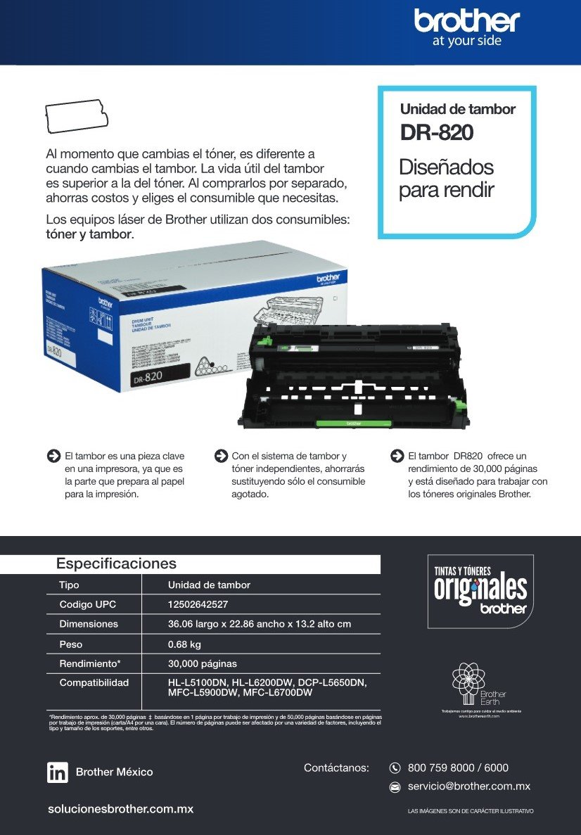 Tambor BROTHER Genérico DR820 / Rendimiento 30,000 Páginas