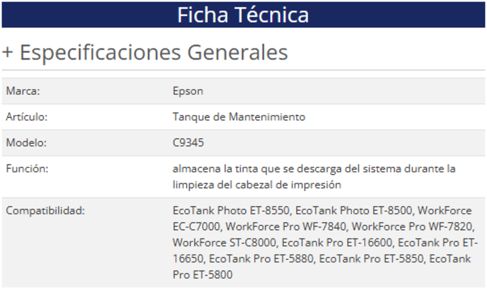 Tanque De Mantenimiento EPSON C9345 / Fácil Instalación / Compatible Con EcoTank Pro ET-16600/ ET-16650/ ET-16650/ ET-5880