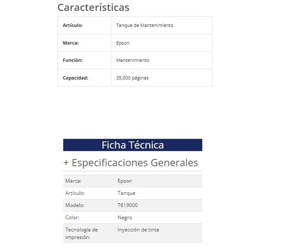 Tanque De Mantenimiento EPSON T619 / Fácil Instalación / Rendimiento 35,000 Páginas / Compatible Con B-300 / B-310 / B-500 / B-510 / Color Negro