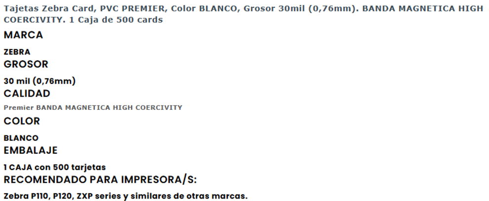 Sé el primero en valorar “Tarjetas De PVC ZEBRA 104523-113 / 30 Milésimas / 500 Piezas / 125 KHz / 5 Paquetes De 100 Piezas / Color Blanco”
