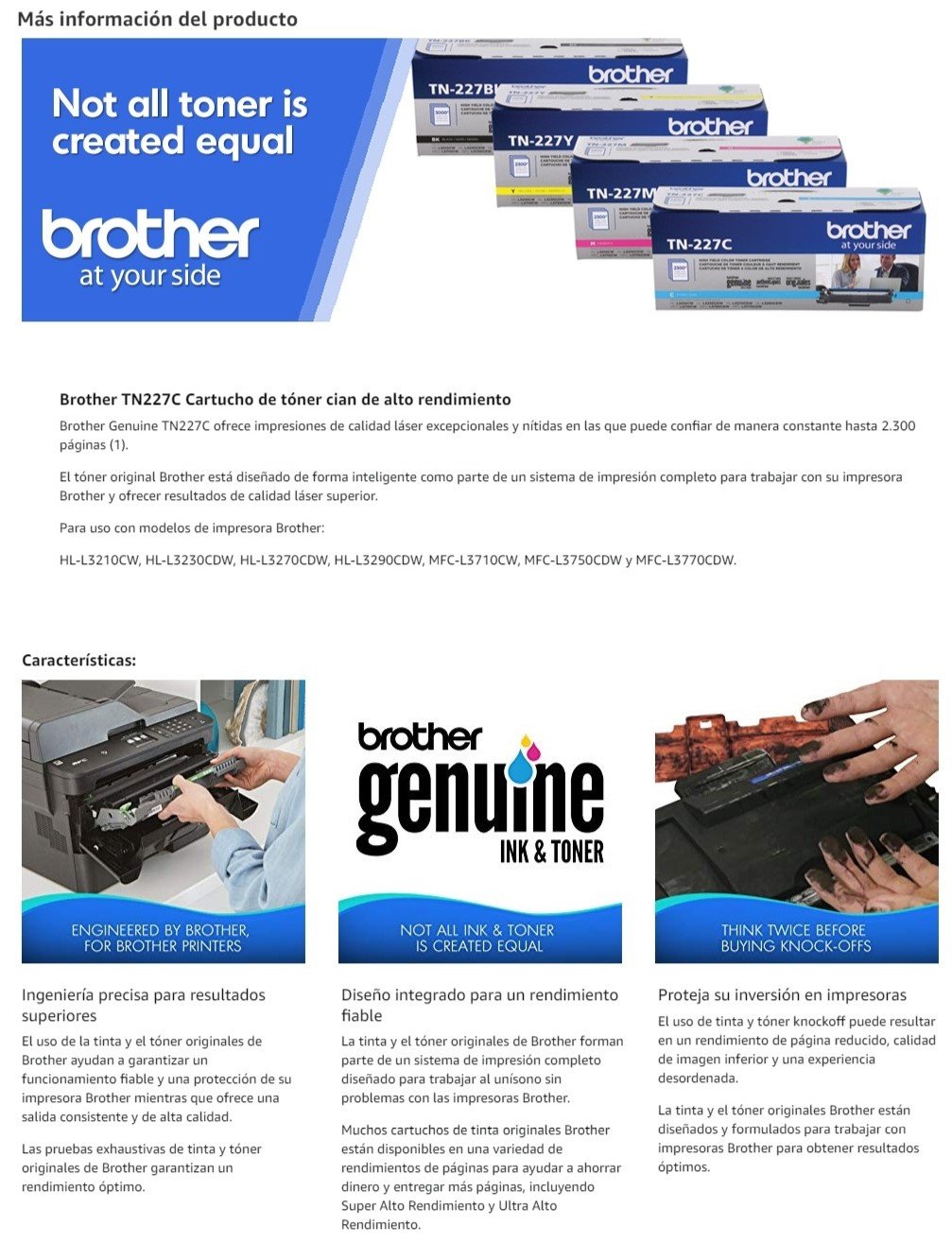 Sé el primero en valorar “Tóner BROTHER TN227C / Alto Rendimiento Hasta 2300 Páginas / Para HL-L3210CW, HL-L3230CDW, HL-L3270CDW, HL-L3290CDW, MFC-L3710CW, MFC-L3750CDW y MFC-L3770CDW / Cian”
