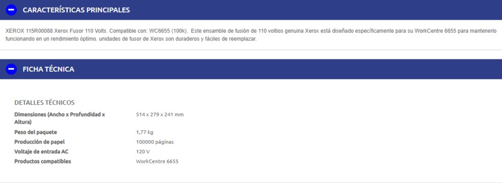El Fusor Xerox 115R00088 es un componente de impresora diseñado para trabajar con el modelo WorkCentre 6655. Este fusor tiene una capacidad de rendimiento de hasta 100,000 páginas impresas y funciona a un voltaje de entrada AC de 120 V.
