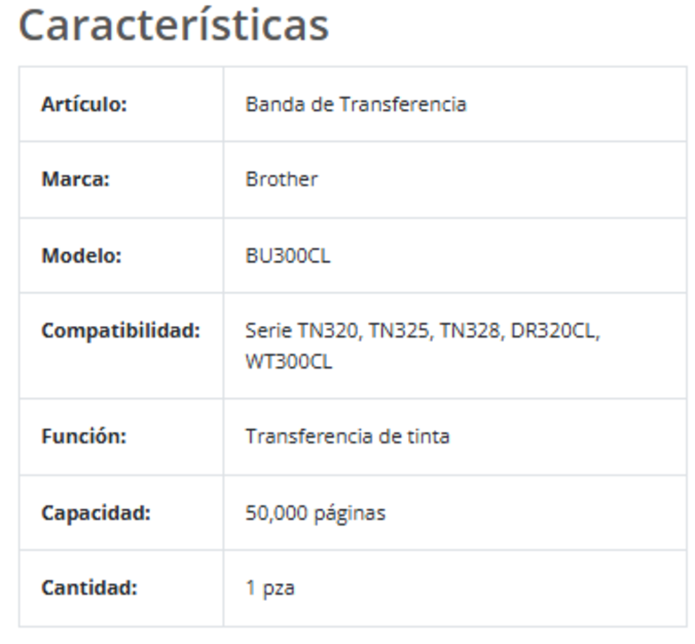 Unidad de Transferencia BROTHER BU300CL / 50,000 Páginas / Compatibilidad Serie TN, DR, WT / Color Negro