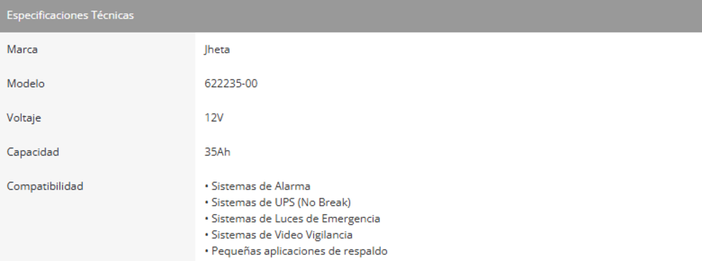 ![622235-00 Batería De Reemplazo JHETA 622235-00 / Para No Break / 12V / 35AH / Fácilmente Recargable / Sin Mantenimiento / Sin Empaque [Bulk/Granel] / Color Rojo - Image 1](https://eafa3974.delivery.rocketcdn.me/wp-content/uploads/2024/11/622235-00.webp)