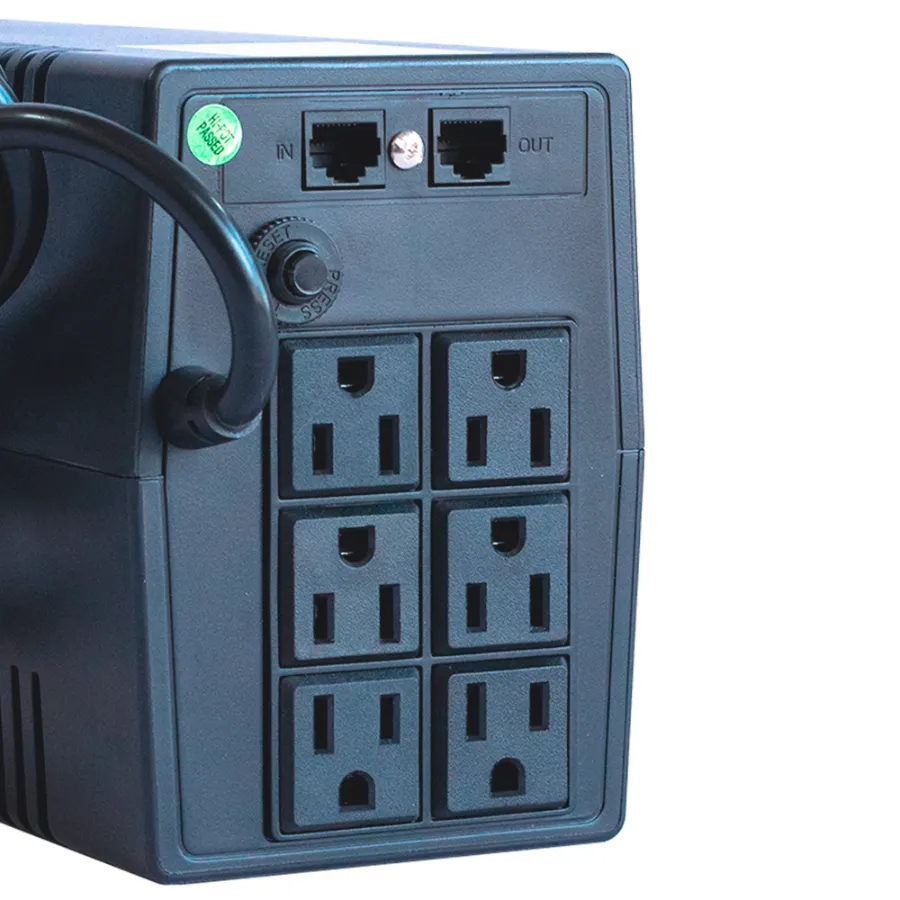 Los cortes de luz, por breve que sean, pueden constituir un problema.  La pérdida de electricidad, aunque dure un par de segundos, puede dejar fuera de  servicio equipos de misión crítica por periodos de tiempo prologados, con consecuencias devastadoras. El SBNB800 ofrece un funcionamiento sin interrupciones a la par con un nivel de protección insuperable contra los efectos perjudiciales de cortes eléctricos y las interferencias que puedan existir en la línea de suministro.  Optimizado para aplicaciones residenciales y empresariales de menor escala, este UPS dispone de seis salidas con protección total en un diseño compacto, el cual ocupa un mínimo de espacio.  Esta unidad se destaca por ser sumamente fiable y eficiente gracias a la adopción de la topología interactiva de última generación. .Al estabilizar la tensión de entrada mediante la función de regulación automática AVR, el UPS garantiza el suministro de corriente estable,  uniforme y en forma permanente a todas las cargas conectadas.