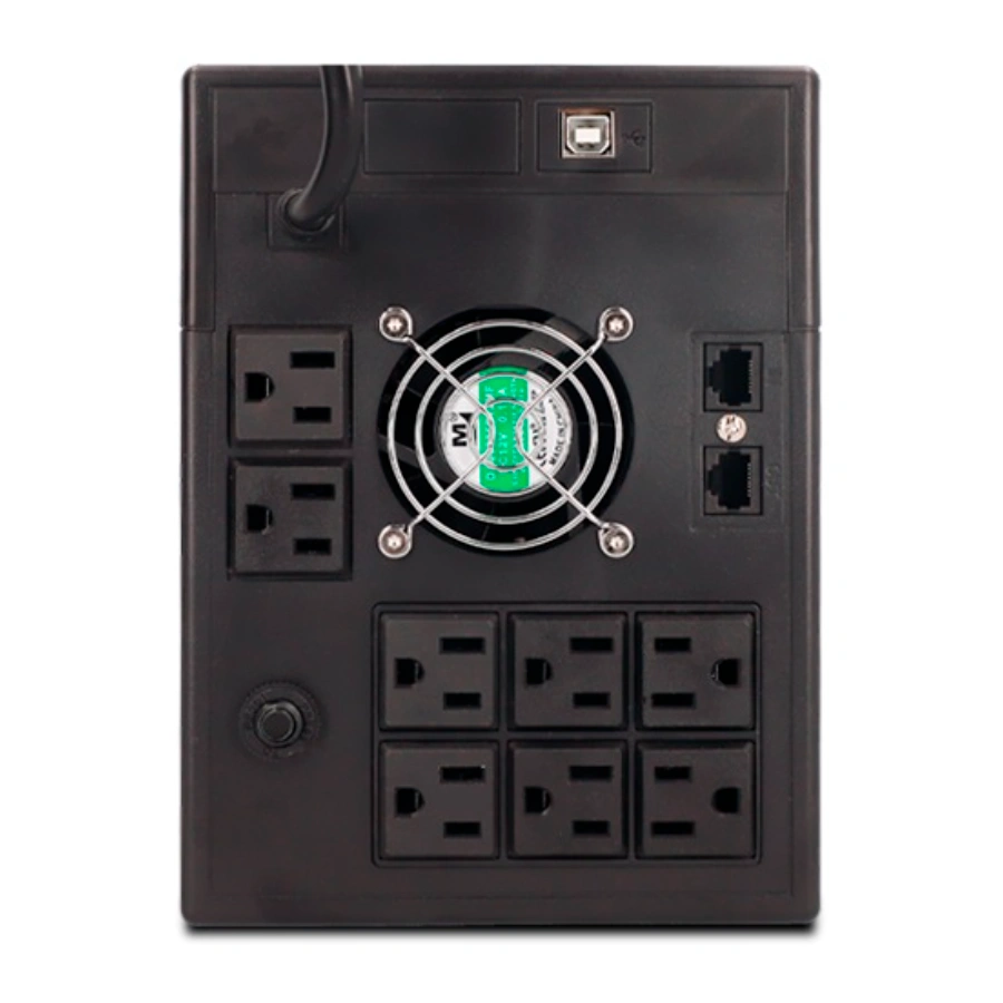 • UPS interactivo de 2000VA de onda sinusoidal pura con baterías internas, regulador de voltaje, supresor de sobre tensión con 8 toma corrientes NEMA 5-15.