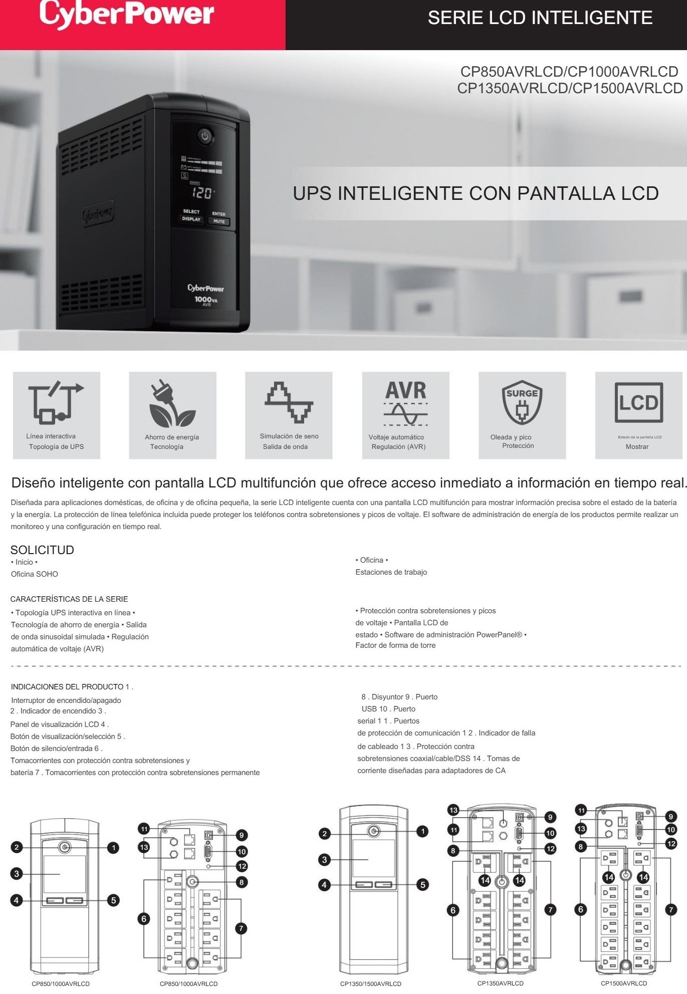 No Break CYBERPOWER CP850AVRLCD / 850VA / 510W / 9 Contactos* / Hasta 7 Min De Respaldo Según Carga* / Pantalla LCD / Negro