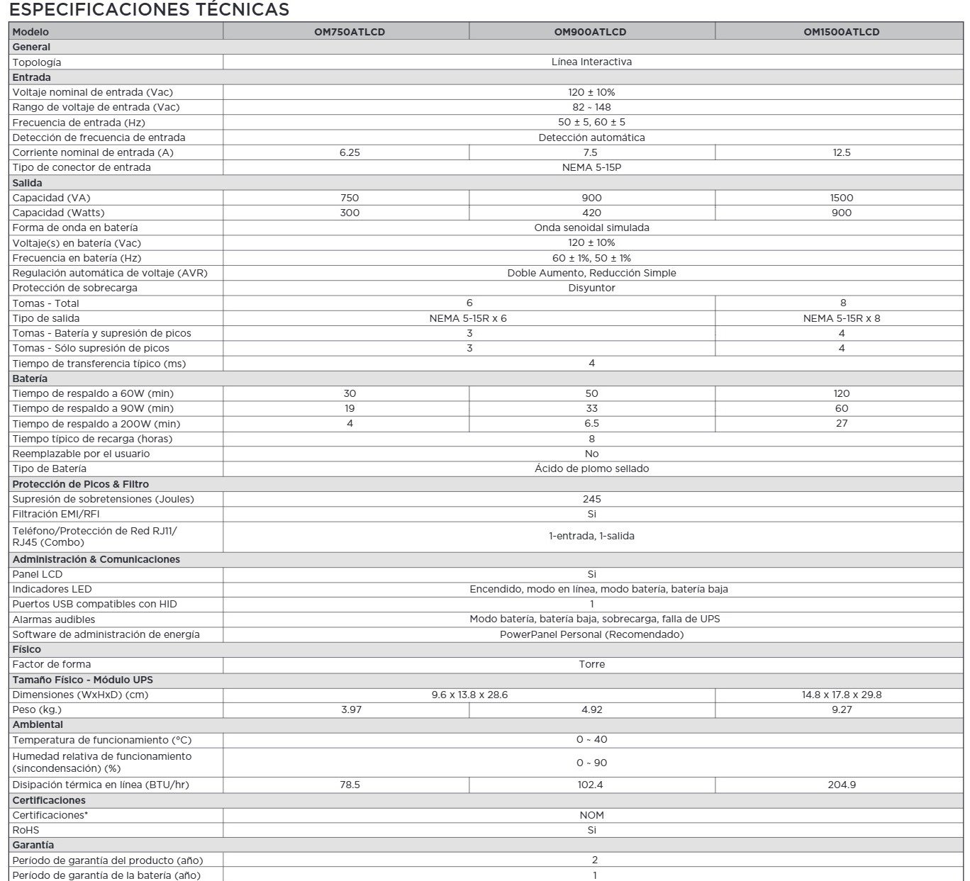 Sé el primero en valorar “No Break CYBERPOWER OM1500ATLCD / 1500VA / 900W / 8 Contactos* / Hasta 50 Min De Respaldo Según Carga* / Pantalla LCD / Negro”