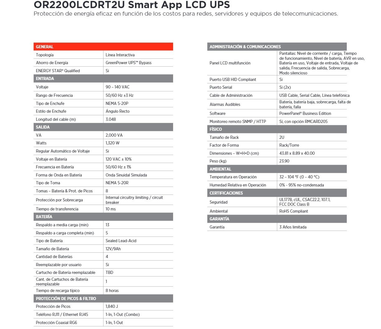 Sé el primero en valorar “No Break CyberPower OR2200LCDRT2U / Pantalla LCD Smart App / 1320W / 2000VA / 8 Contactos NEMA 5-20R / Limitación De Voltaje Interna, Disyuntor / Negro”
