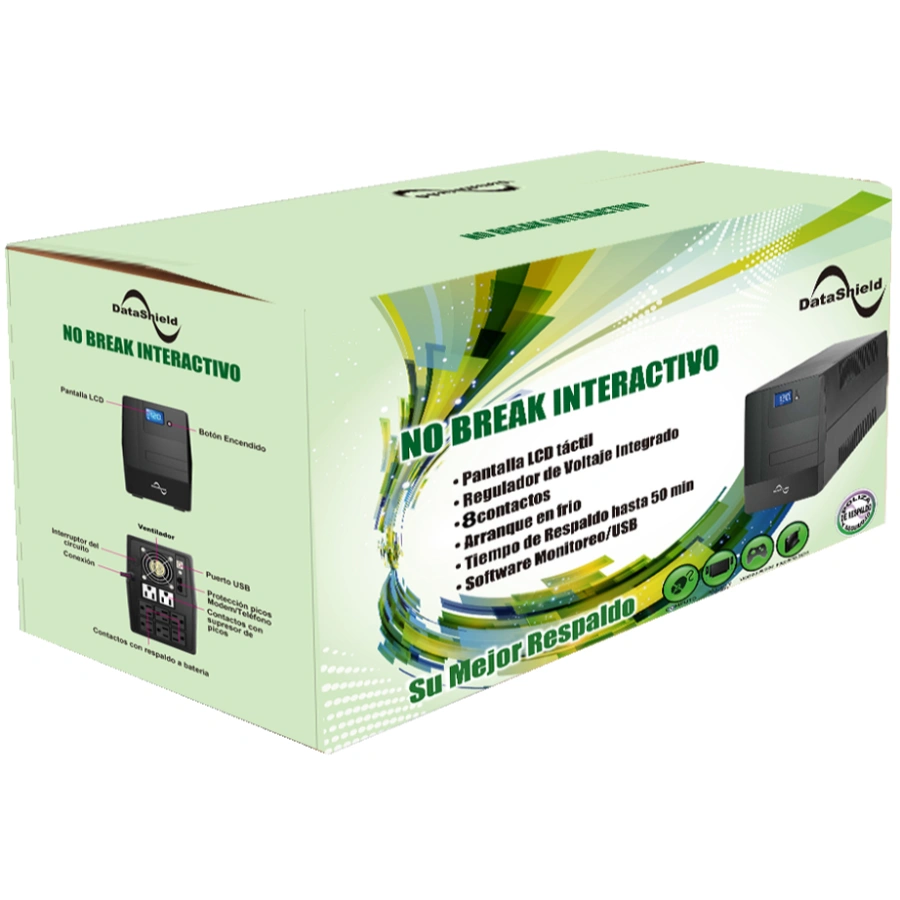 No Break DATASHIELD KS 1500 / 1500VA / 900W / 8 Contactos* / Hasta 100 Minutos De Respaldo Según Carga / Indicadores LCD / Negro