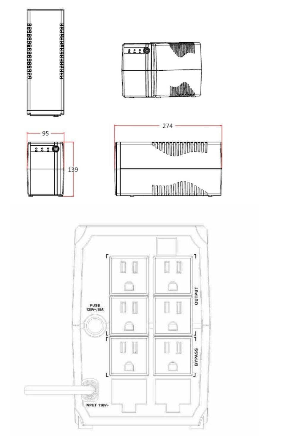 • Dimensiones: 274 x 95 x 139 mm.