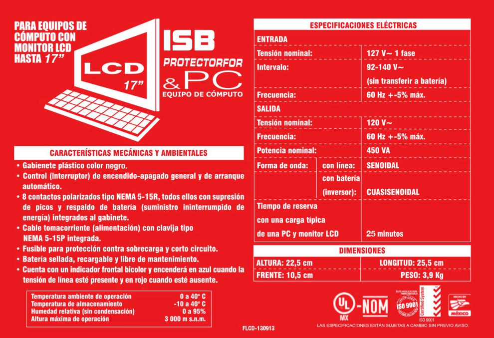 No Break SOLA BASIC ISB PROTECTOR LCD450 / 8 Contactos / 450VA / 225W / 25 Min De Respaldo