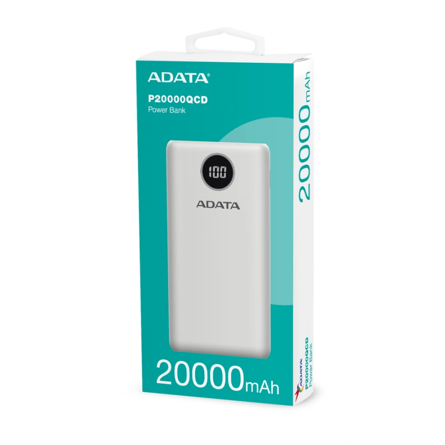PowerBank ADATA P20000QCD / 20000 MAH / Carga Rápida / Diseño Compacto / Blanco