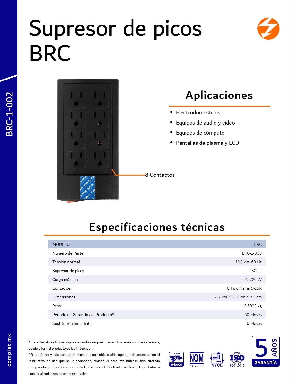Sé el primero en valorar “Barra Multicontacto Complet BRC-1-005 / 720W / Entrada 120V / 8 Contactos / 1 Puerto USB / Supresor de Tensión / Negro”
