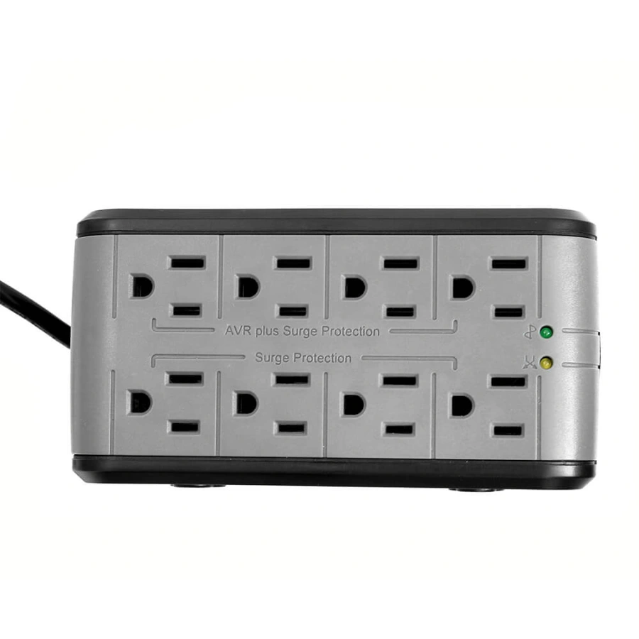 Regulador VORAGO AVR-100 / 480W / Con Led Indicador / Entrada 94V, Salida 132V / 8 Contactos / Supresor De Voltaje / Negro