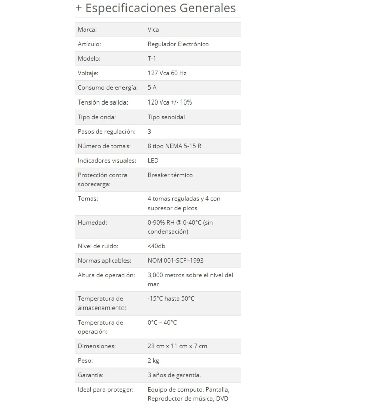 Un equipo funcional y sencillo con capacidad de voltaje de 750VA / 400W para proteger los aparatos eléctricos de nuestro hogar y pequeña oficina, ya que cuenta con ocho tomas de corriente NEMA 5-15R, las cuales cuatro de ellas están reguladas (protegen nuestros aparatos eléctricos de las variaciones/ fluctuaciones de energía) y cuatro tomas con supresor de picos (detectan un sobre voltaje y evitan sobrecargas que podrían dañarlos) además, si dispones de poco espacio, es perfecto para que puedas empotrarlo a la pared, sus indicadores LED le ayudarán al usuario a monitorear el buen funcionamiento de la energía.