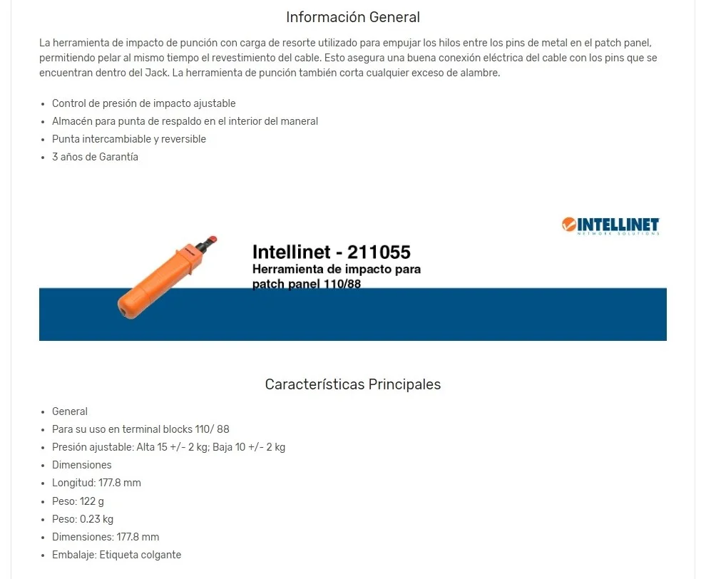 Sé el primero en valorar “Pinza Ponchadora INTELLINET De Impacto / Jacks, Paneles De Parcheo, Terminal Block 110/88 / Anaranjado”