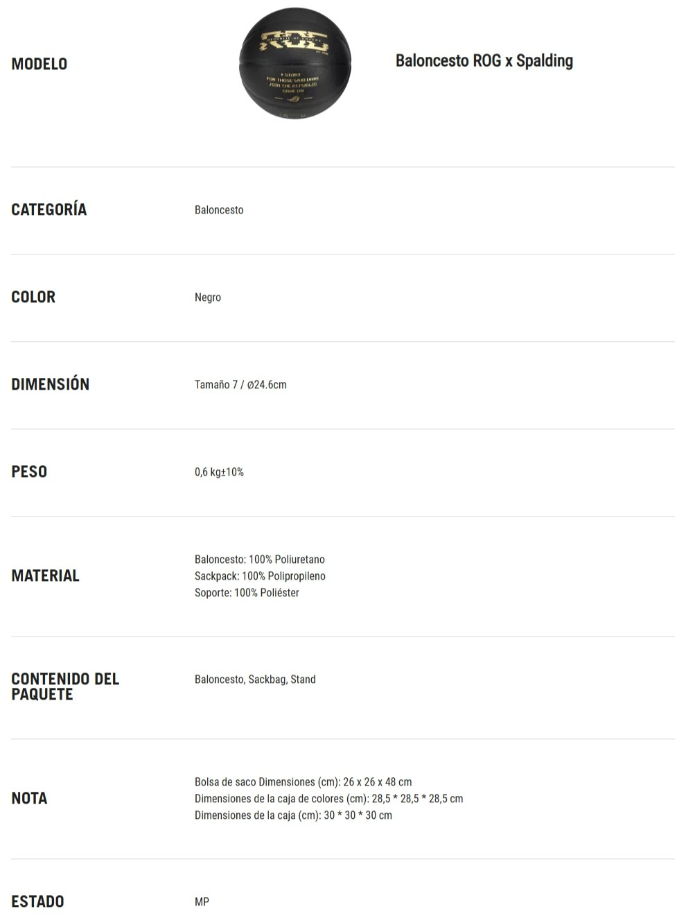Sé el primero en valorar “Balón De Baloncesto Asus OM300 ROG x Spalding Basketball – Incluye Stand y Bolsa Con Cordón, Sintético con Relieve de Piel de Serpiente – Negro”