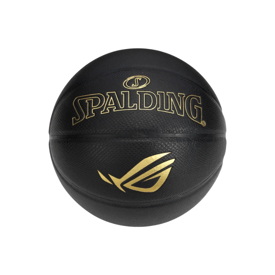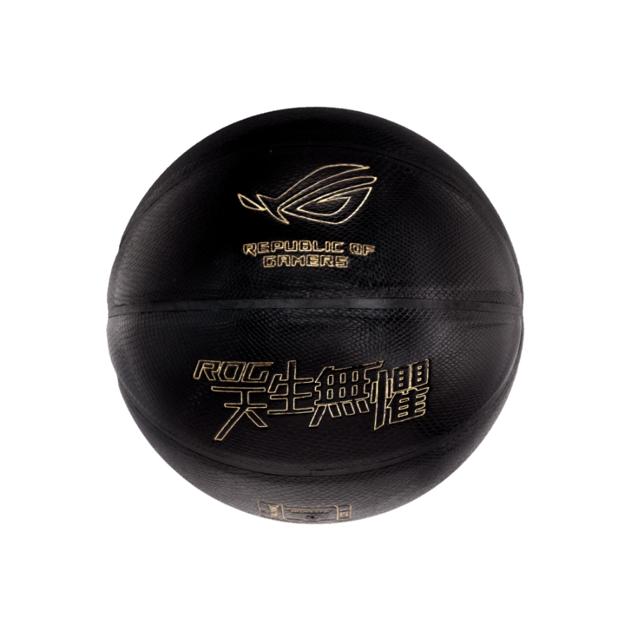 El balón de basketball ROG X Spalding está hecho de un compuesto sintético con relieve de piel de serpiente unido a mano y presenta marcas ROG pixeladas. Incluye un soporte de exhibición personalizado y una bolsa con cordón.