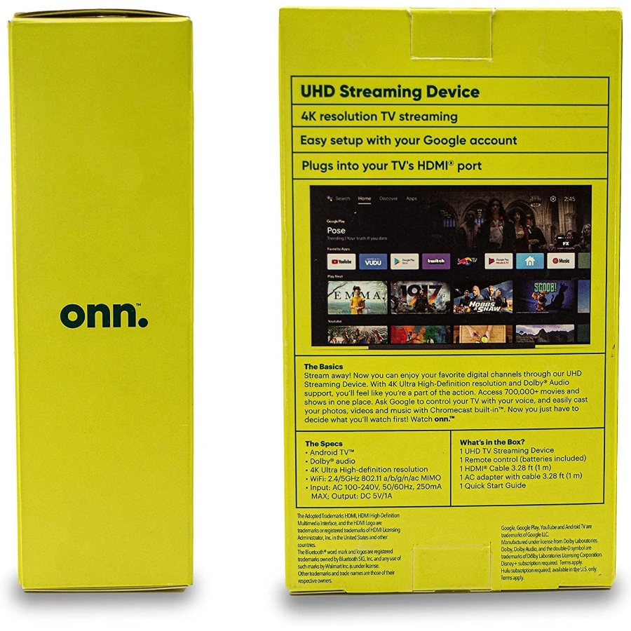 Tv Box Onn / Google TV / 2GB RAM / 8GB Almacenamiento / UHD 4K / HDMI, WIFI / Control Remoto Por Voz Asistente Google / Chromecast Integrado / Negro