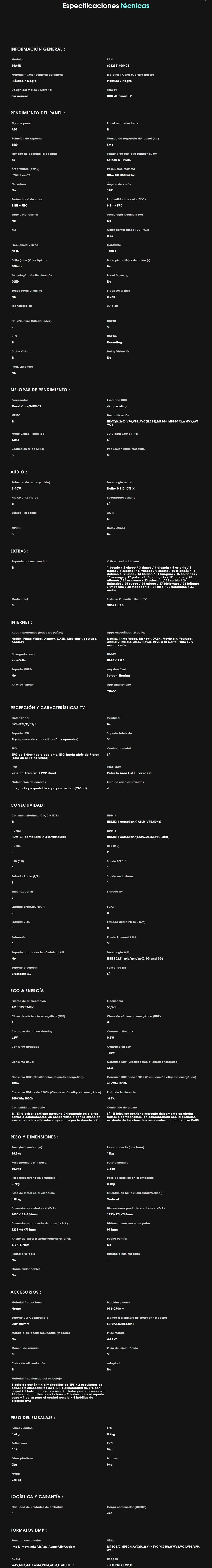 Pantalla HISENSE 4K 55A6N / Google TV / 55″ / 4K UHD / WIFI / Bluetooth / RJ45 / Dolby Visión, Modo Juego Plus, Control por Voz / X3 HDMI / X2 USB / 60Hz / Negro